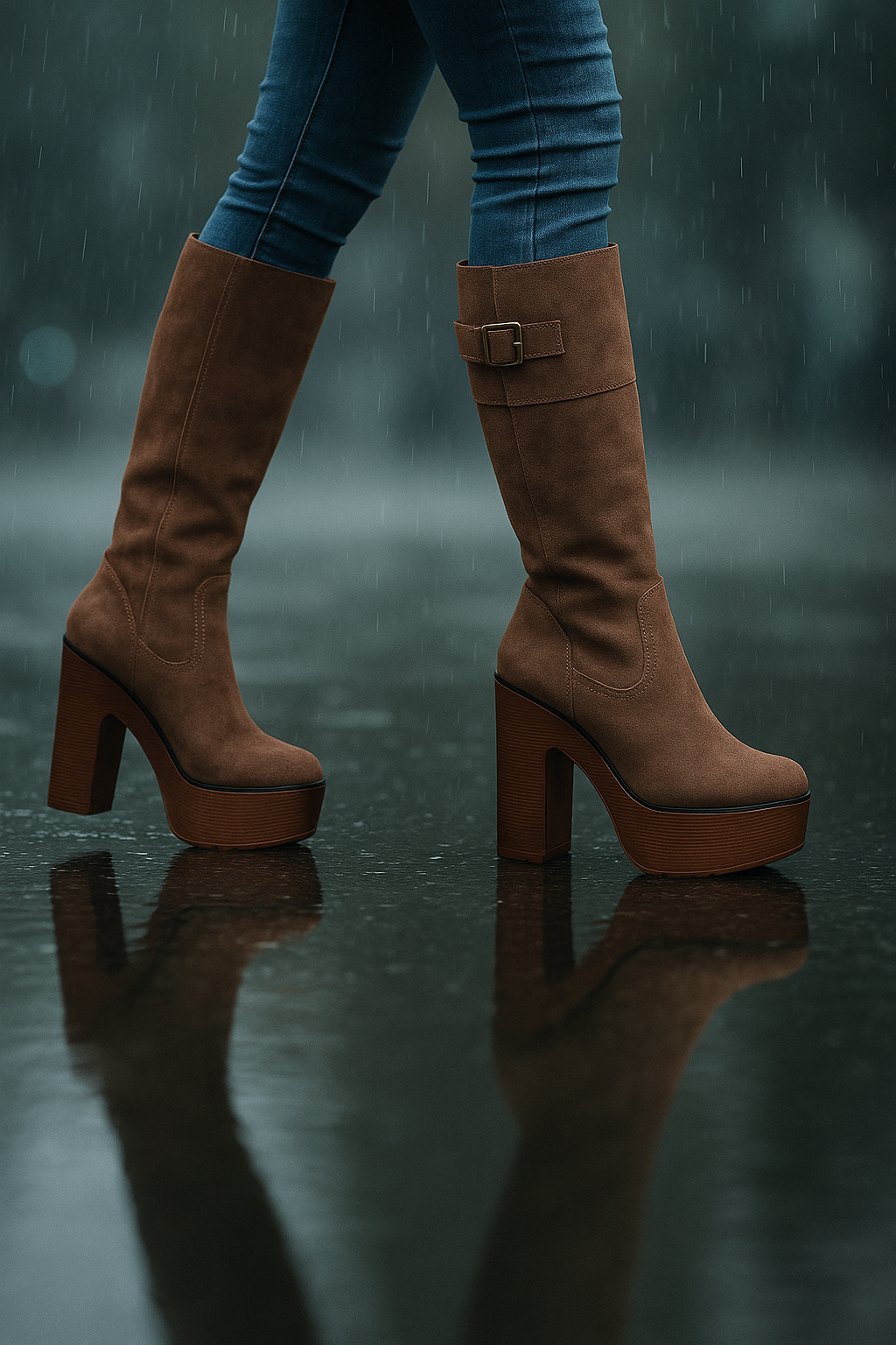 Botas en Gamuza Khaki con Taco Medio y Plataforma 2203KH