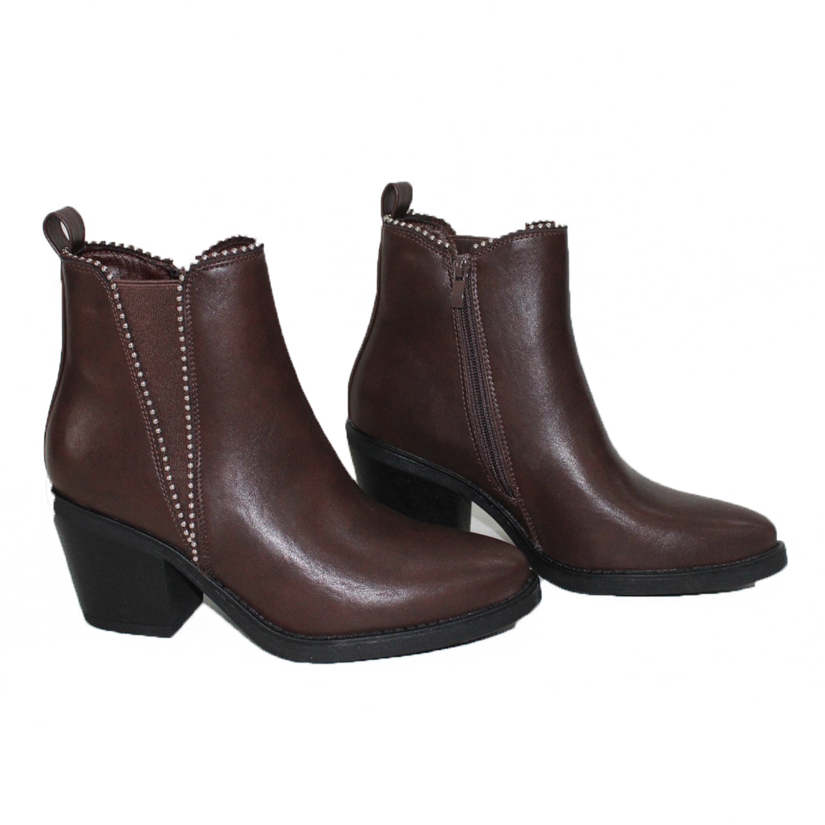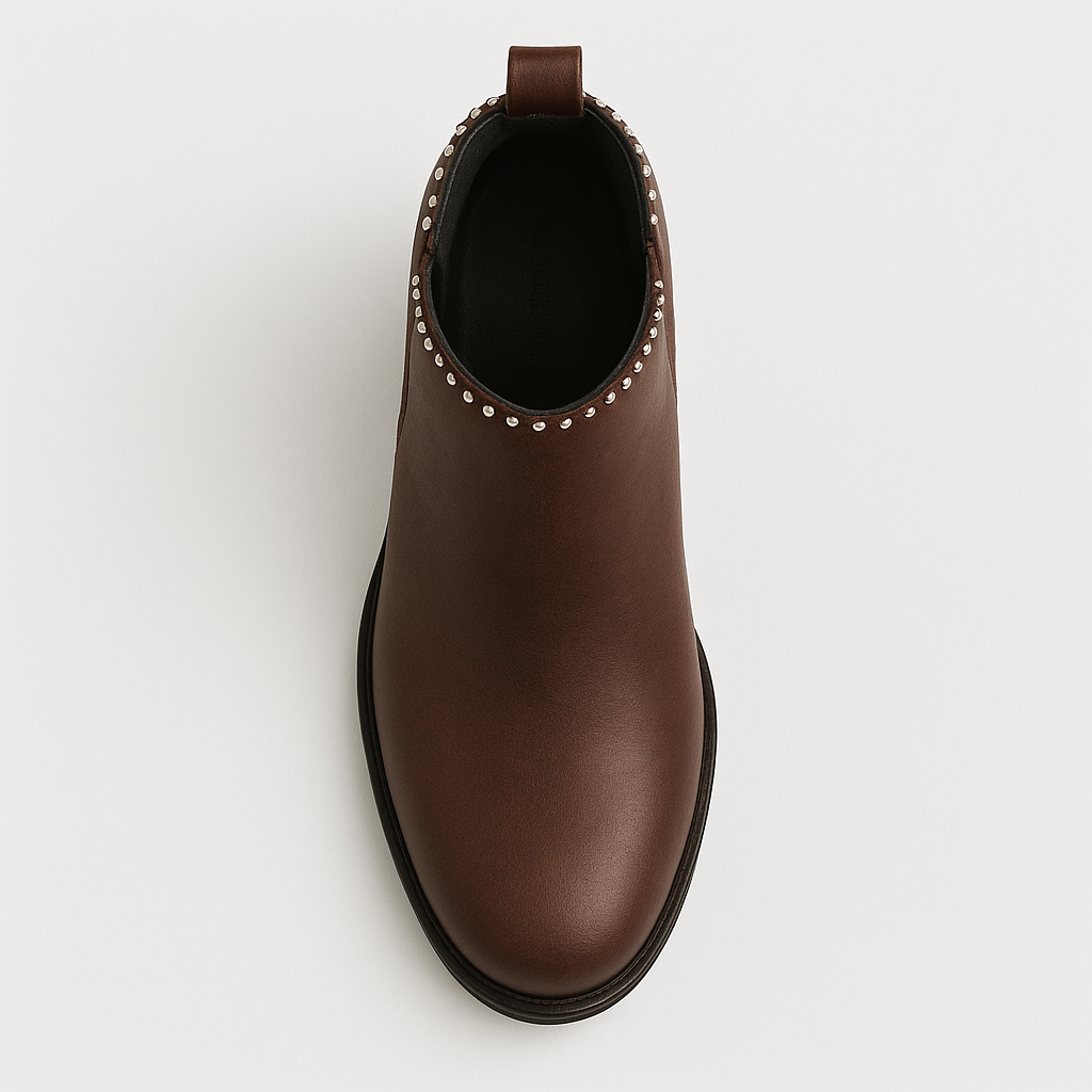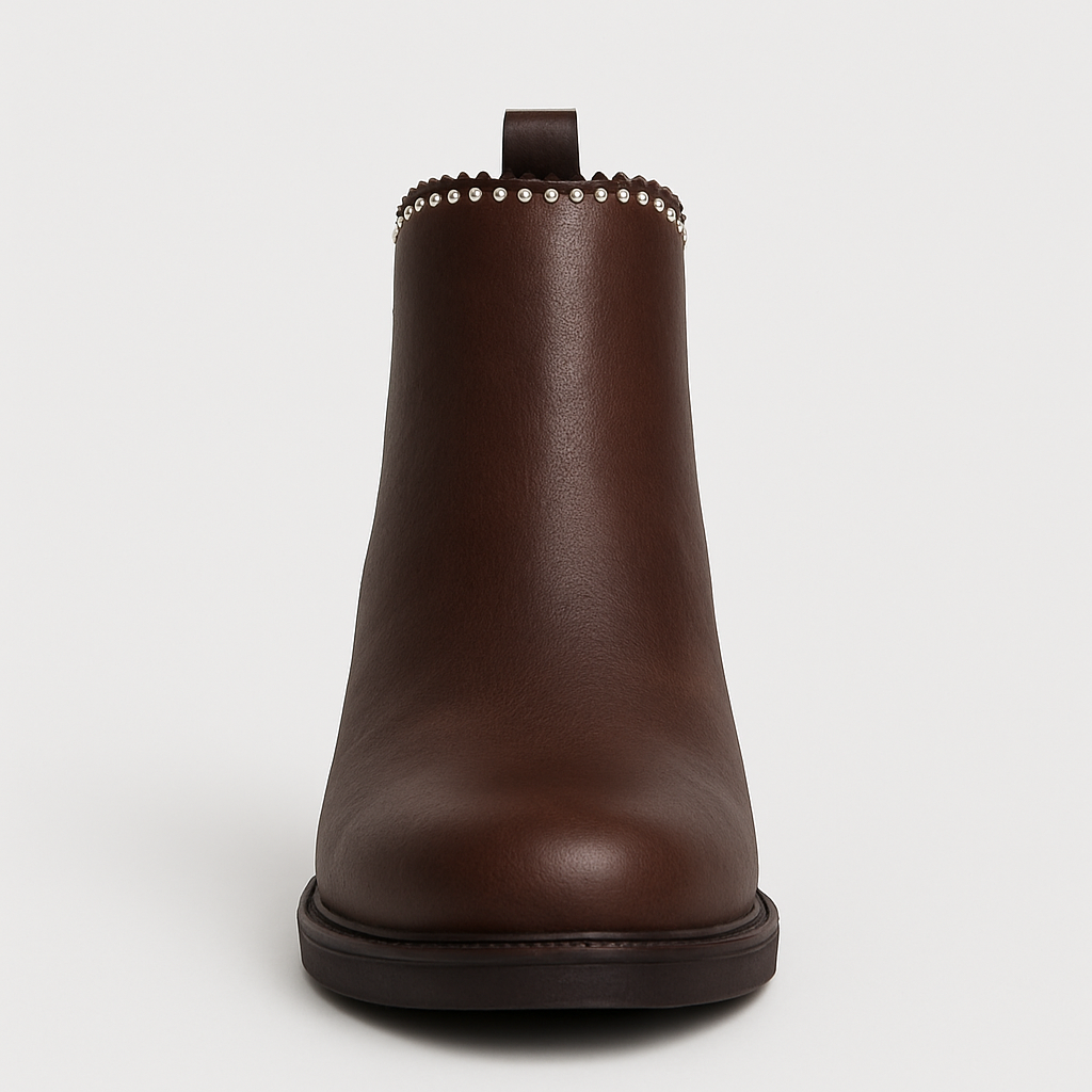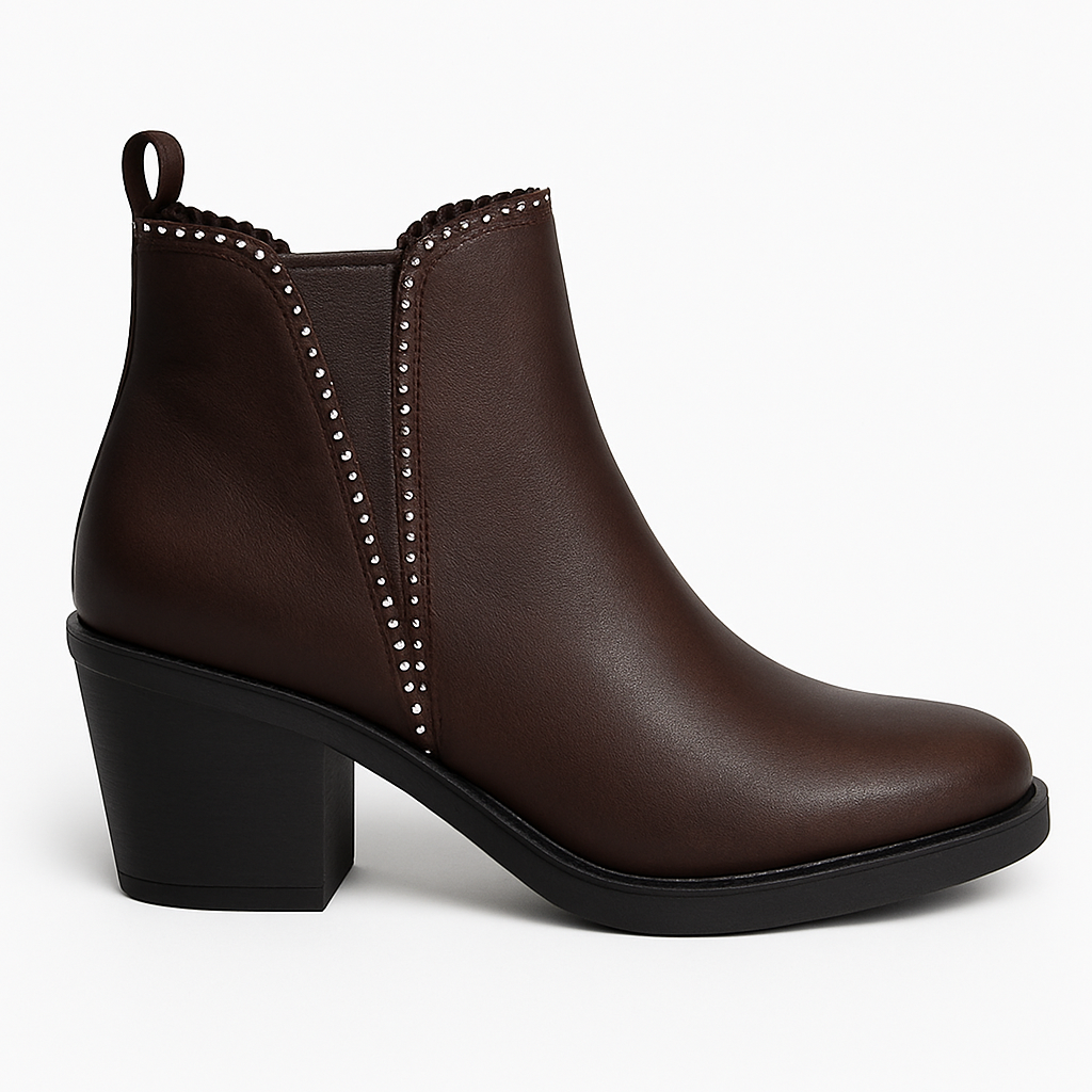 Botines Café Estilo Chelsea con Apliques Brillantes 2601CF