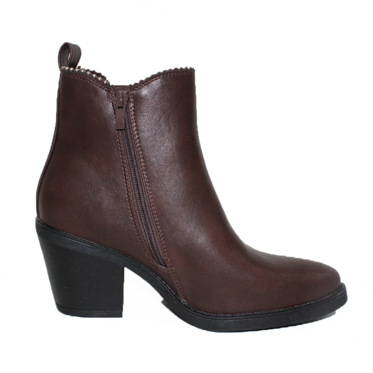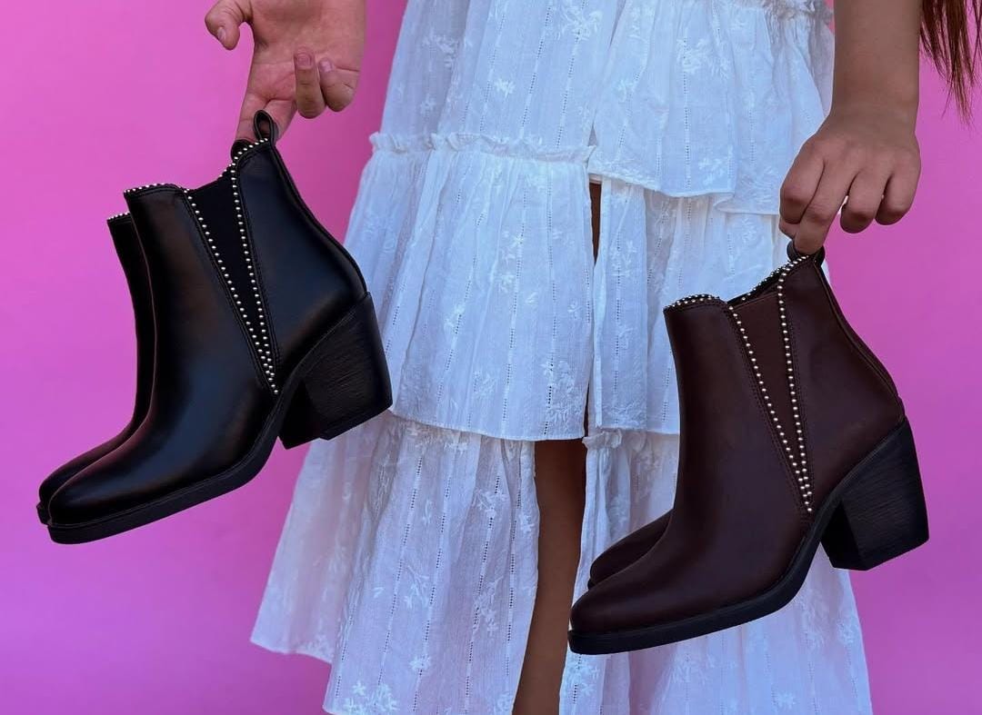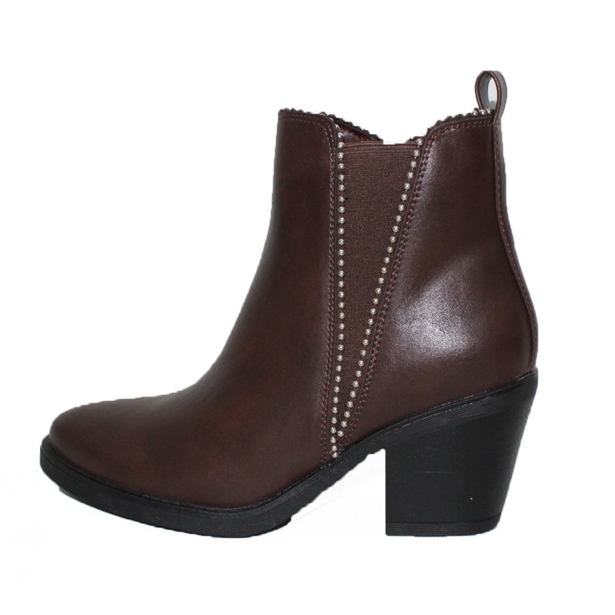 Botines Café Estilo Chelsea con Apliques Brillantes 2601CF