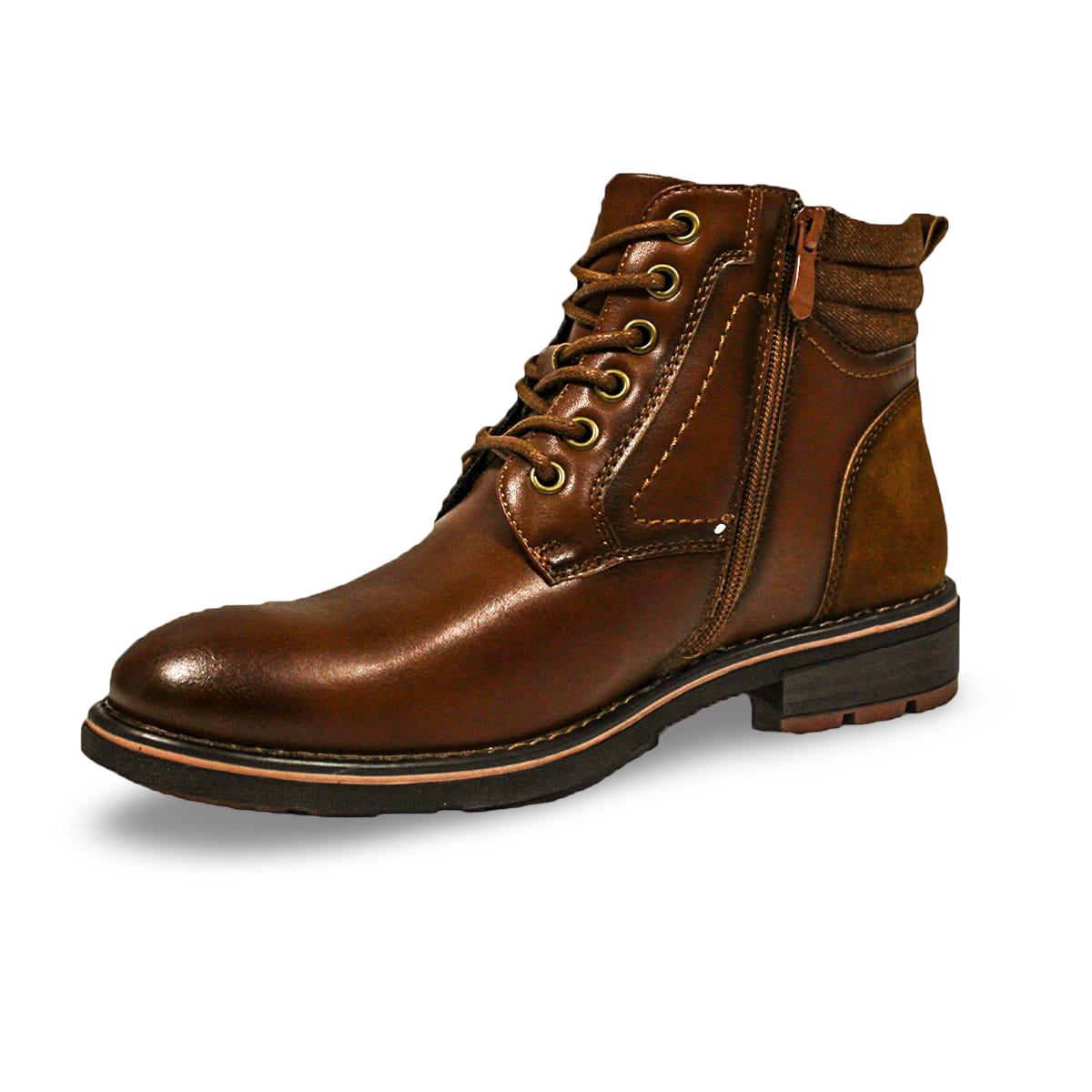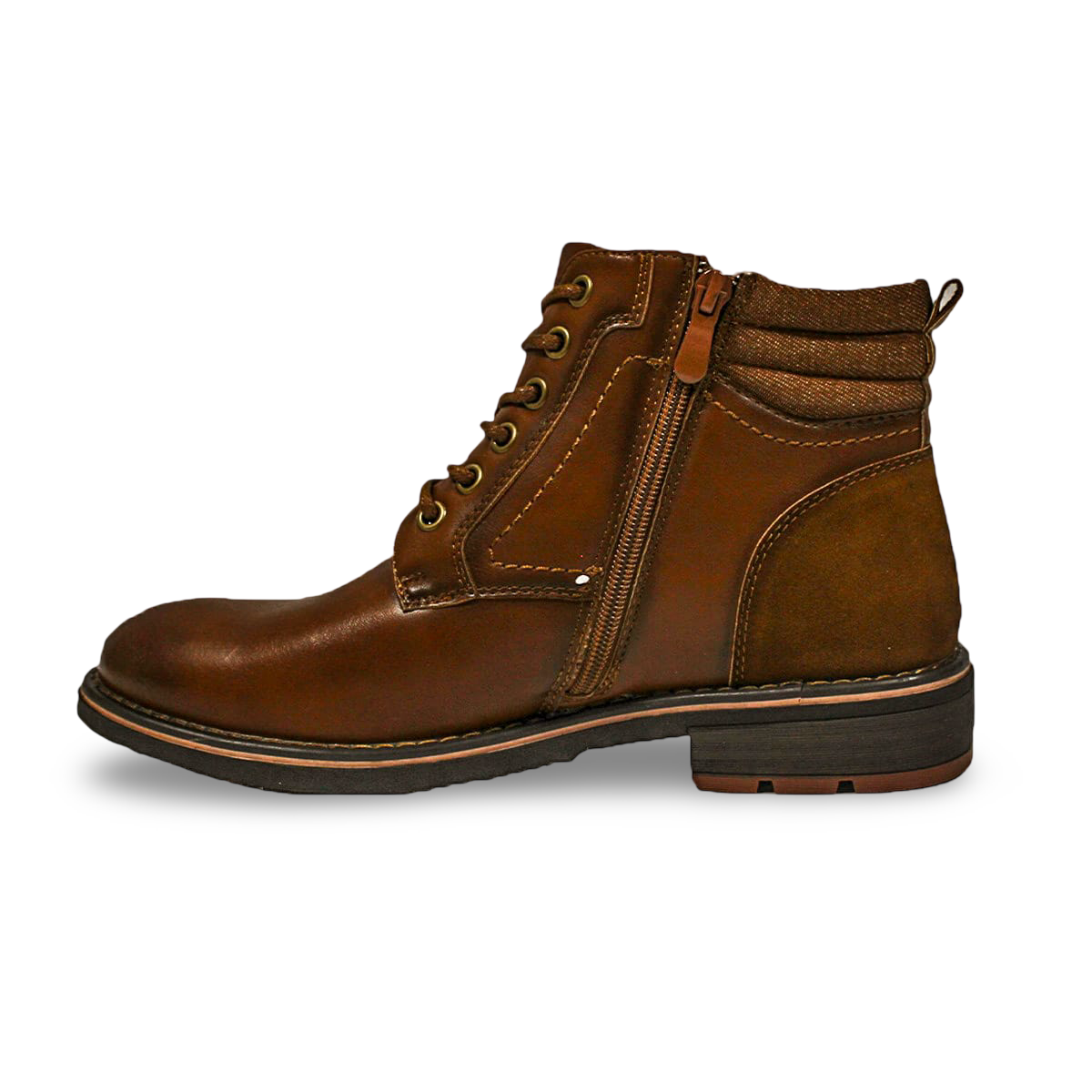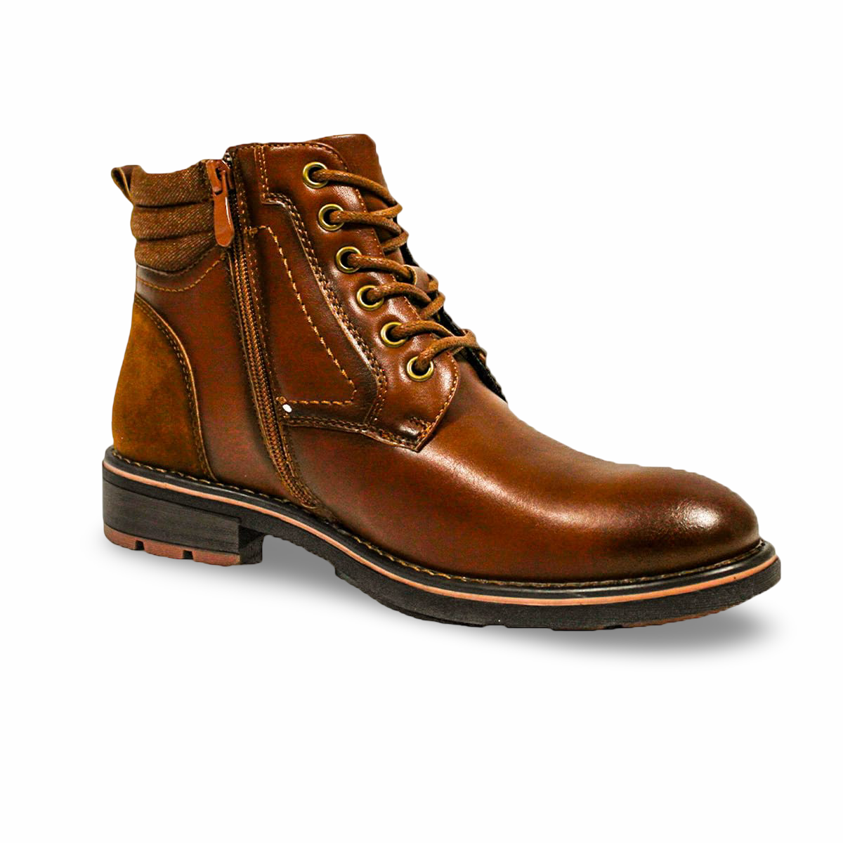 Botines Casuales Eco Cuero Café Cierre Lateral Cremallera Hombre H09CM