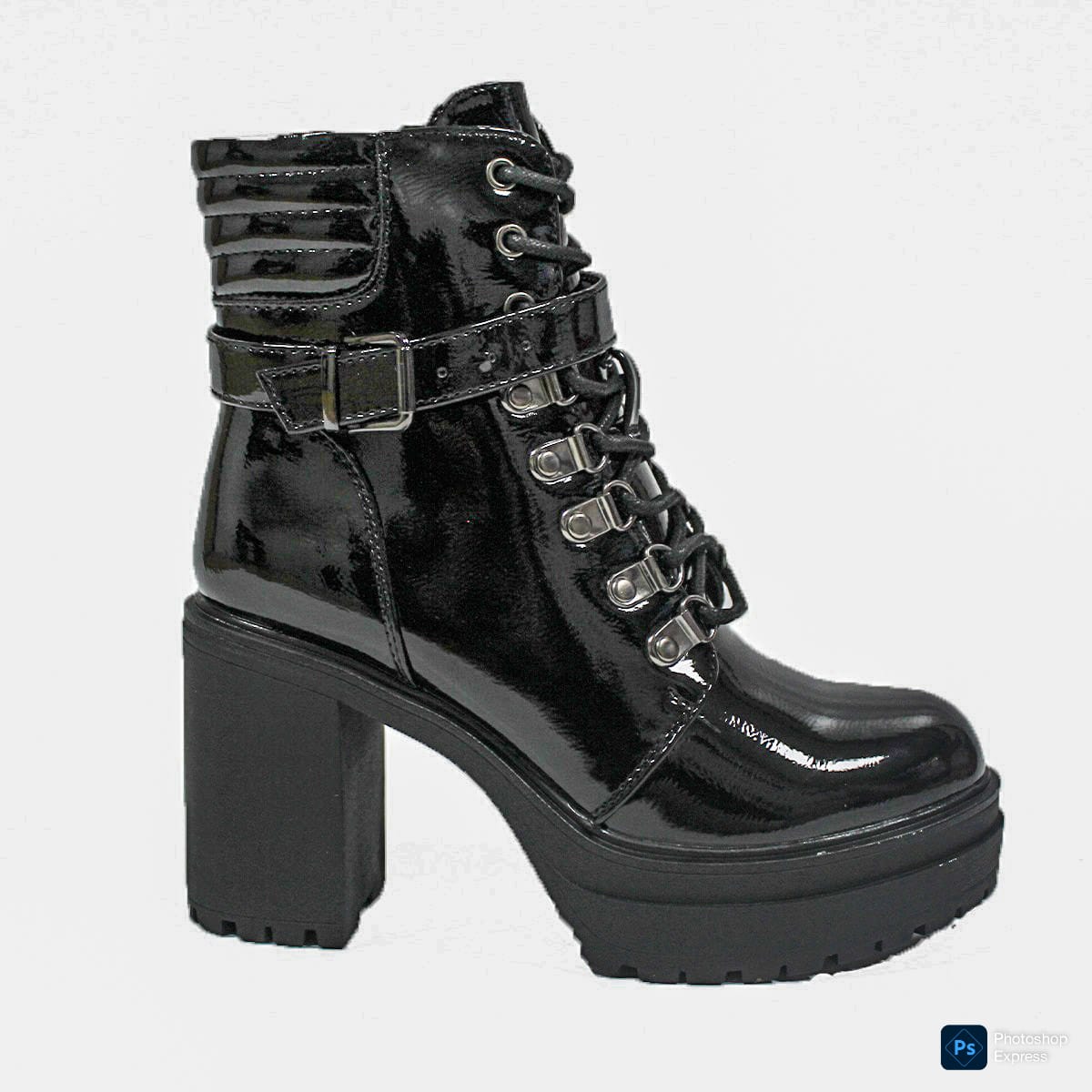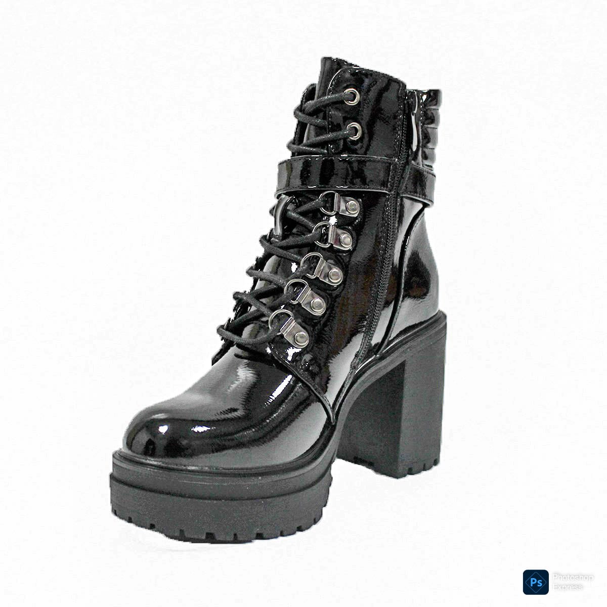 Botines en Charol Negro con Taco Alto Mujer 24-33ANG