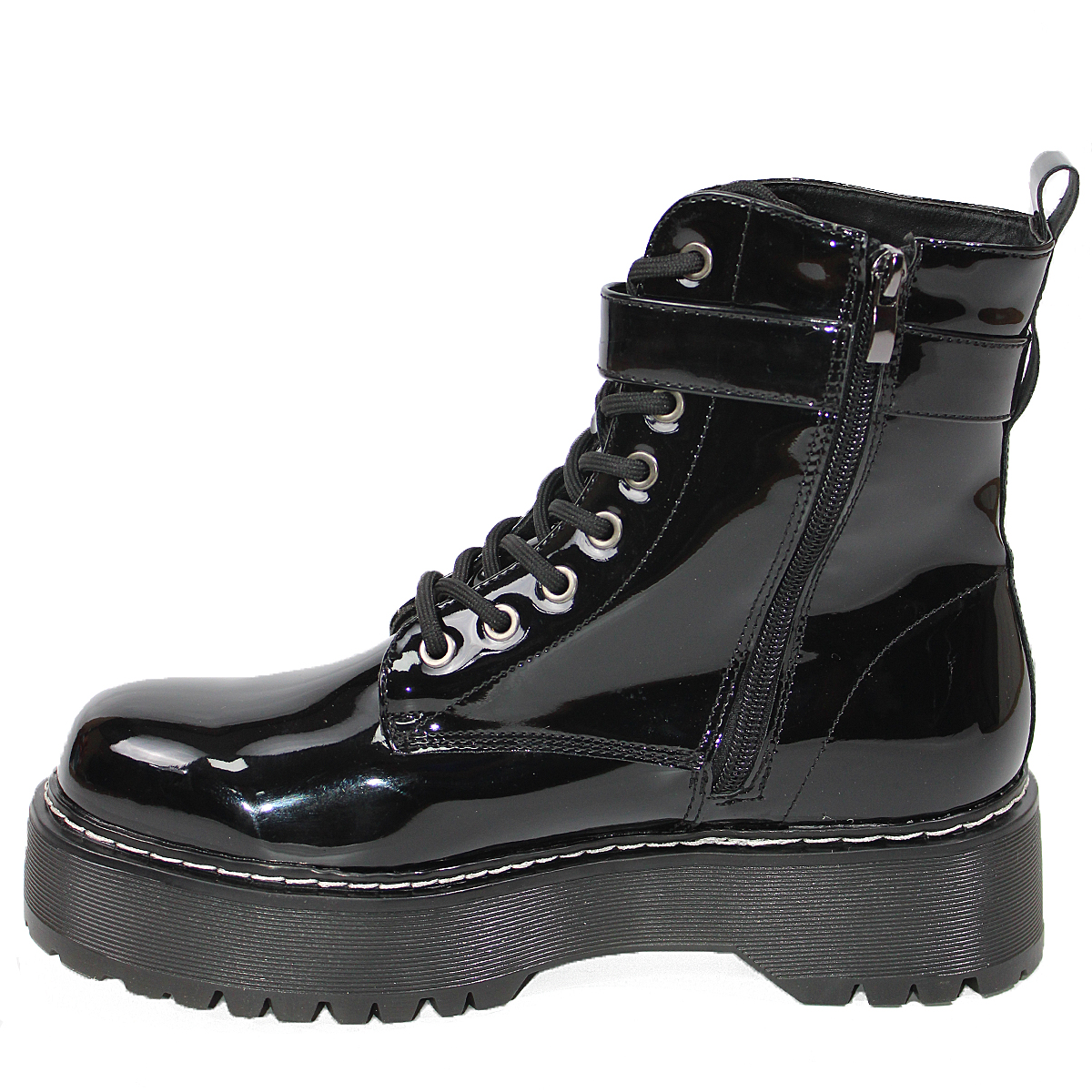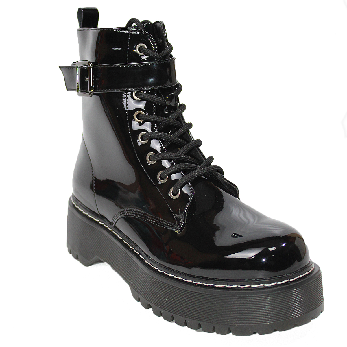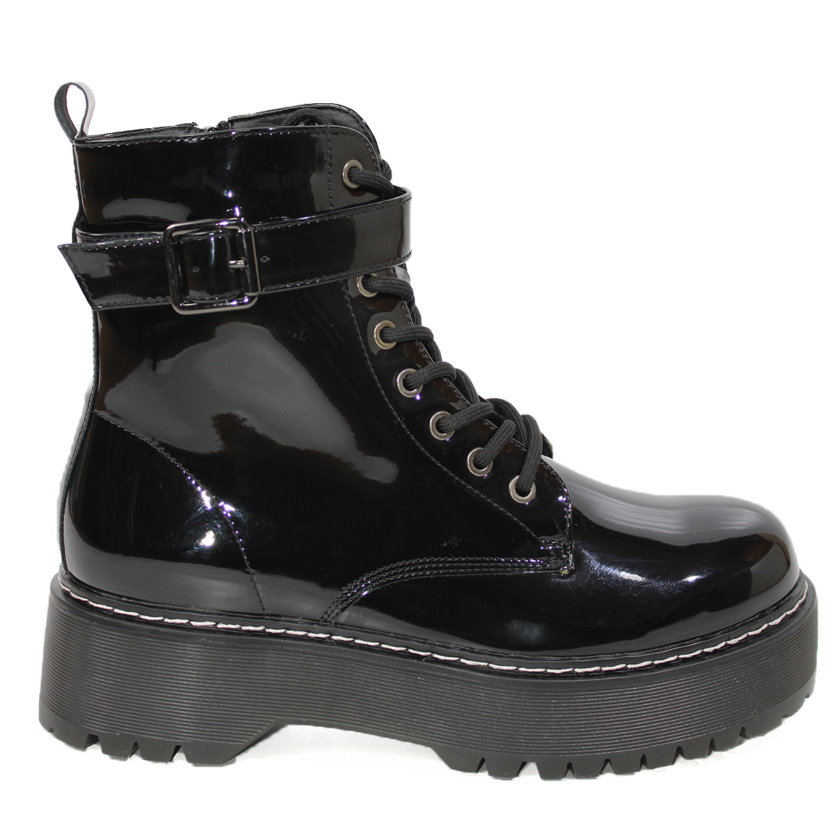 Botines Estilo Dr. Martens en Charol Negro con Hebilla Alta Mujer 2903ANG
