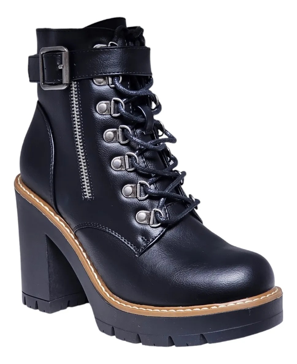 Botines Eco Cuero Negro De Taco Mujer PG23084-1NG