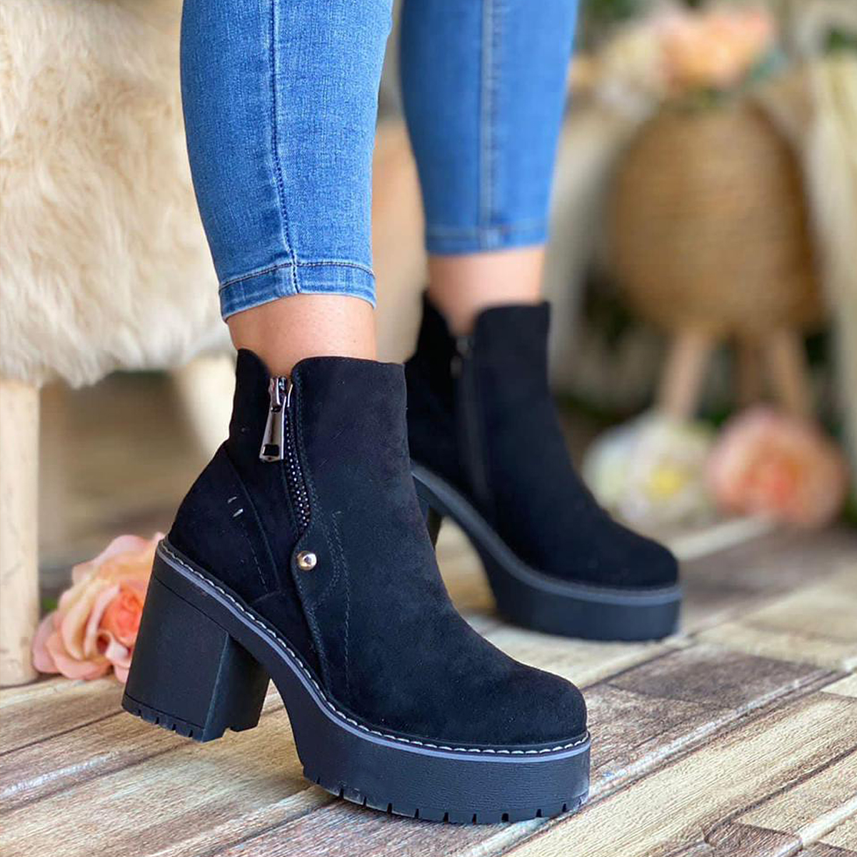 Sé el primero en valorar “Botines en Gamuza Negra con Taco Medio y Cremallera 2205NG”