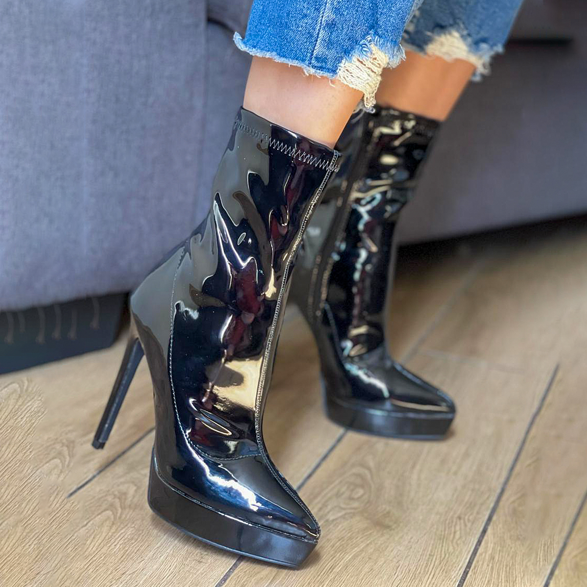 Sé el primero en valorar “Botines Negros en Charol en Punta y Taco Alto DC2307BNG”
